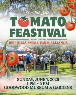 The Red Hills Small Farm Alliance invites you to join us for the 21st Annual Tomato Feastival on Sunday, June 7, 2026, at the beautiful Goodwood Museum & Gardens.