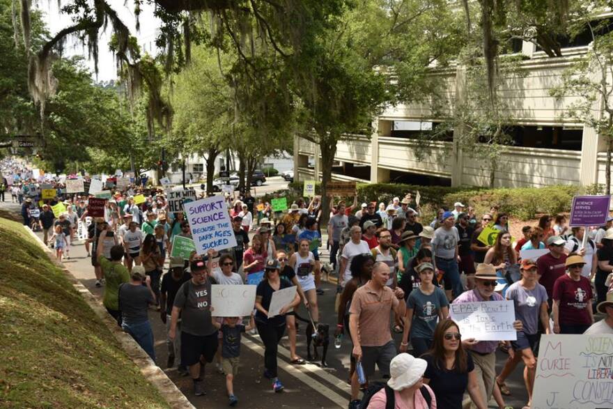 Organizers said the Earth Day protest in Tallahassee was one of 500 worldwide. The marches especially focused on cuts to programs that deal with climate change, which President Trump has called a “hoax.” But Florida State University professor Jeff Chanton said science is needed to show the evidence for good public policy or against bad public policy.