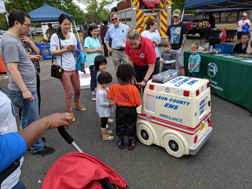 The parking lot at Tallahassee's Governors Square was the site of the Leon EMS Safety Fair on Saturday, April 6. There were full-size ambulances and other emergency vehicles on display at the Fair, along with a small remote controlled ambulance that talked.