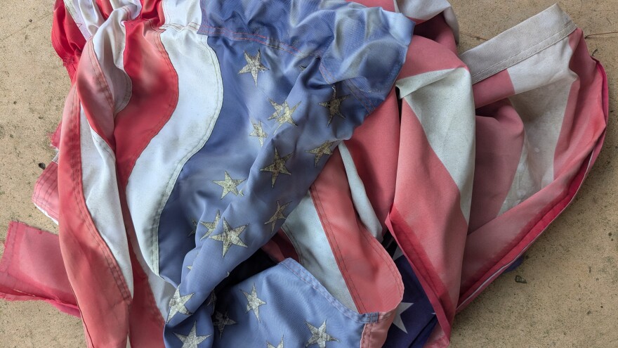 American Legion Sauls-Bridges Post 13 Commander Dennis Hall says there are three ways to dispose of an unserviceable flag: One, take the flag to a community disposal box, like the one at the post.